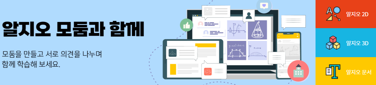알지오매스는 초, 중, 고 학생들에게 수학 탐구용으로 매우 도움되는 사이트입니다. 꼭 사용해 보시길 바랍니다.