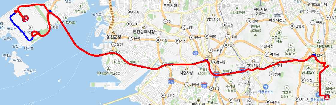 5300 을지대학교 인천공항 공항버스 운행 노선