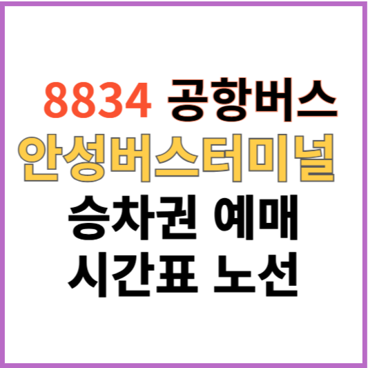 8834 안성 인천공항 공항버스 예매 시간표 정보를 알아보겠습니다. 안성터미널을 시작으로 공도, 오산, 세마역, 인천공항 방향으로 운행하는 8834번 승차권 예매, 운행시간표, 실시간 버스 위치, 정류장 위치 등을 확인하시고 인천공항 이용 시 참고하시길 바랍니다.