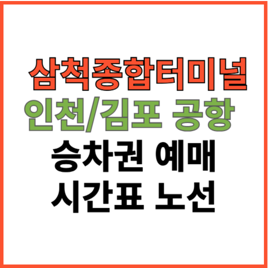 삼척 종합버스터미널 인천공항 김포공항 승차권 예약 운행 시간표 정보를 알아보겠습니다. 삼척종합버스터미널에서 탑승하여 동해, 강릉을 경유하여 김포공항, 인천공항에 도착하는 고속버스 승차권 간편 예매, 운행 시간표, 비용 등을 확인하시고 공항 이용 시 참고하시길 바랍니다.